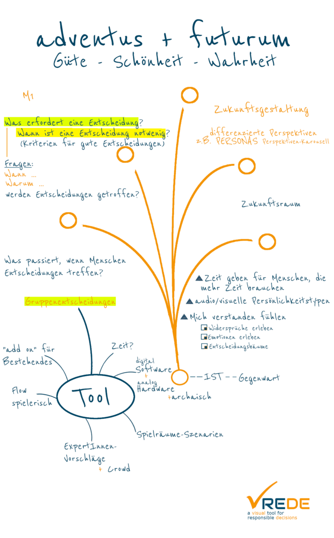 Nach einer größeren und mehreren kleineren Besprechungen zwischen GUT, ÖIN und Plenum konnte heute das Forschungsdesign finalisiert werden. Die Grafiken müssen noch etwas überarbeitet werden. Zusammenfassung Forschungsdesign Wir identifizieren Teams, Entscheidungsszenarien und Methoden. Wir moderieren in ausgewählten Teams, mit ausgewählten Methoden ausgewählte Entscheidungsszenarien und beobachten die Prozesse … Interpretieren, was gut funktioniert hat, was weniger.…