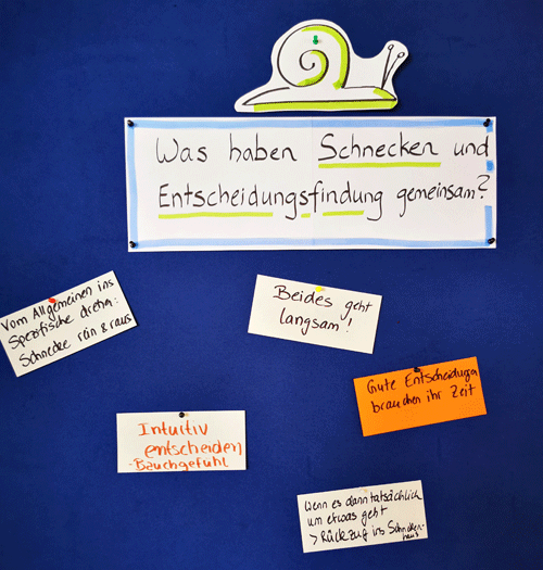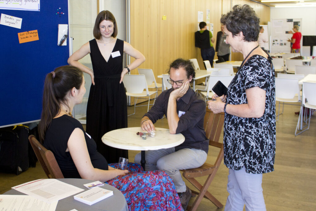 Dorothea Erharter (GUT), Sylvia Brenzel (plenum) und Anna Biebl (ZIMD) präsentierten an einem Stand die Ergebnisse von VREDE und luden zu verschiedenen Aktivitäten ein: „Was haben Schnecken und Entscheidungsfindung gemeinsam?“ war eine Frage, zu der die Teilnehmer:innen ganz unterschiedliche Antworten fanden.