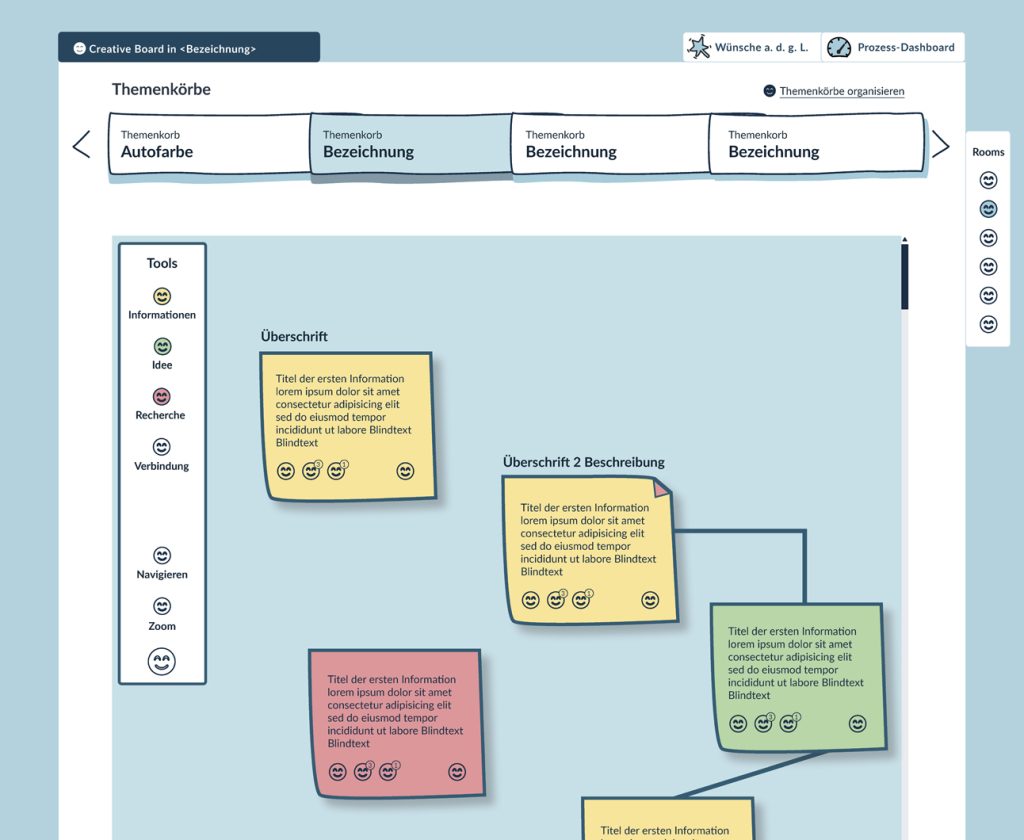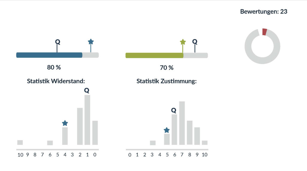 Der VREDE-Prozess ist deutlich umfangreicher, als hier gezeigt werden kann, und umfasst alle Phasen von Gruppenentscheidungen, von der Formulierung des Themas und dem Zusammenfinden der Beteiligten bis zur Darstellung des Ergebnisses nach außen und der Reflexion. Diese Teile sind bislang nicht implementiert. Ein Folgeprojekt ist bereits in Planung und wir haben auch bereits finanzkräftige Partner für die Umsetzung.